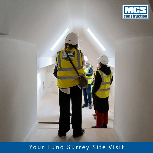 During the visit, Clover Cotmore, Shelley Lynch and Sarah Adams from Your Fund Surrey, observed the second-fix electrical works being installed upstairs. They were also able to view the progress of the decoration works, the new doors that have been fitted, and walked up the newly installed staircase to see the developing spaces.